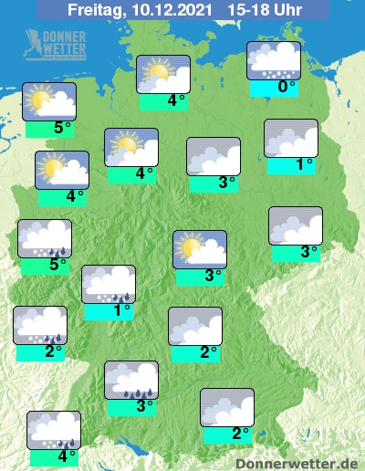 Am Freitagnachmittag zeigt sich der Himmel abseits lokaler Auflockerungen im Nordwesten und anfangs auch noch im Südosten stark bewölkt oder bedeckt. An der Ostseeküste sowie im Westen und Südwesten muss in den kommenden Stunden immer wieder mit Regen oder Schneeregen gerechnet werden, oberhalb von 200 m fällt Schnee.