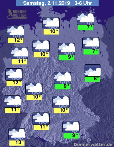Die Temperaturen liegen während der Frühstunden im Nordosten und Osten noch im einstelligen Bereich. Sonst werden milde 10 bis 13 Grad gemessen.