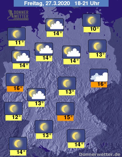 Kurz vor Dämmerungsbeginn liegen die Temperaturen noch zwischen 10 und 16 Grad. Am kühlsten bleibt es an den Küsten.