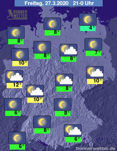 Bis Mitternacht lösen sich die lockeren Wolken allmählich auf und die Temperaturen gehen allmählich zurück.