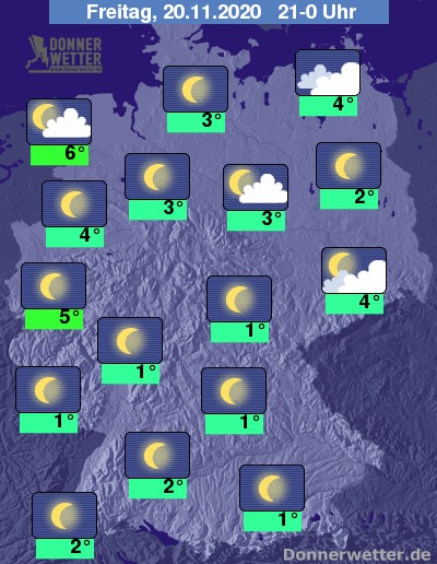 Bis Mitternacht lösen sich die Wolken weiter auf und lassen verbreitet Mondsichel und Sterne leuchten.