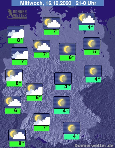 Am Abend präsentiert sich der Himmel über Deutschland teils sternenklar, teils wechselnd bewölkt. Bis Mitternacht verdichten sich die Wolken im Nordwesten, es sollte jedoch noch trocken bleiben.