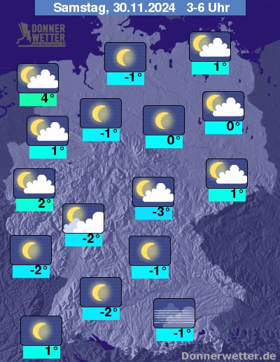 Die Temperaturen gehen in den frühen Morgenstunden zurück auf Werte um 4 Grad an der Nordseeküste und -3 Grad in Franken.