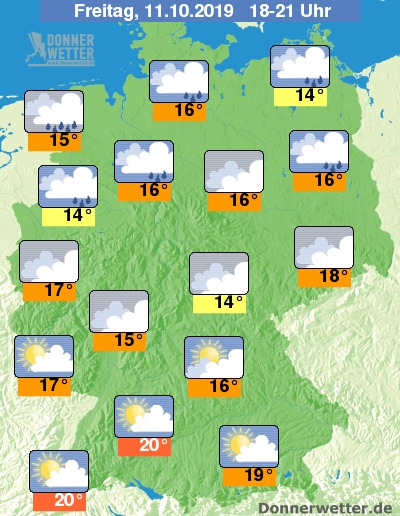 Die Temperaturen bewegen sich vor der Dämmerung überwiegend zwischen 13 und 17 Grad, im Süden, sowie in Teilen Sachsens können auch noch zwischen 18 und 20 Grad erreicht werden.