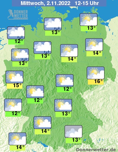 Heute Nachmittag ist es im Norden oft stark bewölkt und es bilden sich örtliche Schauer. Weiter nach Süden hin ist es hingegen überwiegend heiter bis sonnig, teilweise aber auch trüb oder stark bewölkt, dazu bleibt es trocken. Die Temperatur liegt bei 12 Grad am Pfälzer Wald und bis 16 Grad in der Niederlausitz. An den Küsten weht zudem ein oft stürmischer Wind.