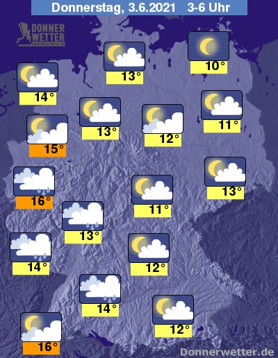 Die Temperaturen gehen bis zum frühen Morgen auf Werte um 16 bis 10 Grad zurück.
