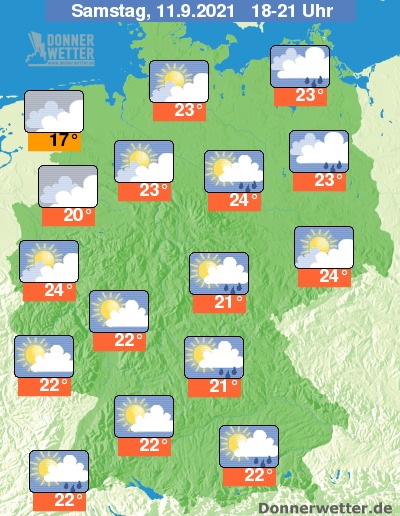 In den Abendstunden zeigt sich der Himmel über dem Norden und Osten anfangs noch meist wechselnd oder stark bewölkt, bevor es im weiteren Verlauf weiter auflockert. In der Südhälfte des Landes überwiegen lockere Wolken, im Südwesten klart es später auch auf. Im Osten und Südosten sind zunächst noch regionale Schauer möglich, bis Mitternacht klingen diese aber weitgehend ab. Ein geringes Schauerrisiko besteht dann nur noch am Alpenrand.