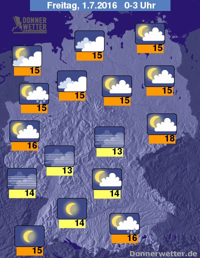 Tiefstwerte um 13 Grad C in der Nacht auf Freitag.