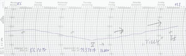 Hoch "Tilly" versüßt heute weiten Landesteilen den Start in die neue Woche - unser Schrieb zeigt den Luftdruckverlauf zwischen dem 08.05. und 15.05.2017: