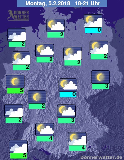 Heute Abend halten sich im Südwesten und an der Nordsee zum Teil dichte Wolken, sonst ist es hingegen meist nur locker bis aufgelockert bewölkt oder auch sternenklar. Es bleibt trocken bei Werten zwischen 0 und 5 Grad.