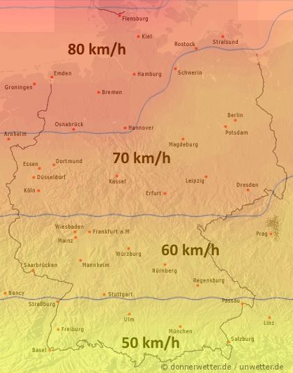 Hier sehen Sie die Windgeschwindigkeiten für Mittwochmorgen: