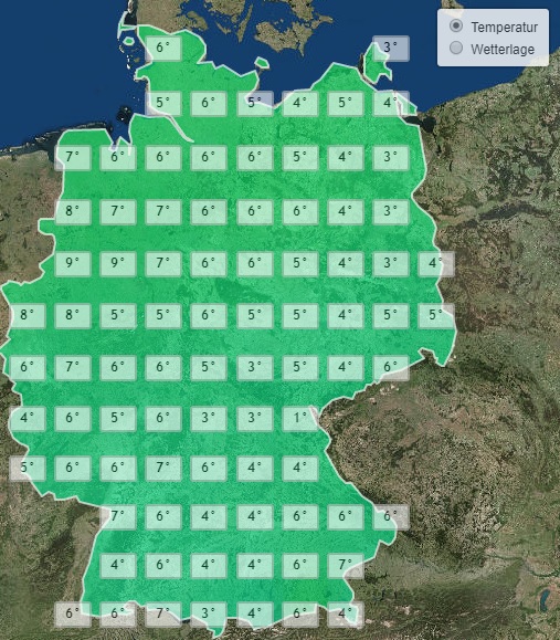 Dazu weht vor allem in der Nordhälfte ein böiger Wind aus westlicher Richtung. Damit gelangen nun auch langsam wärmere Luftmassen ins Land. Im Emsland steigt das Thermometer am Nachmittag auf Höchstwerte knapp unter der 10 Grad Marke. Deutlich kühler bleibt es vor allem im Nordosten des Landes, hier liegen die Höchsttemperaturen bei Werten um die 3 Grad.