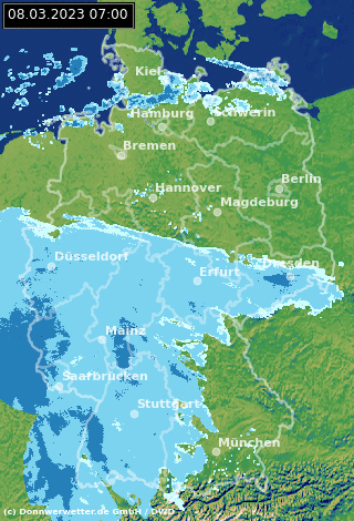 Im Rest der Republik zieht dichte Bewölkung durch und es fällt zeitweise Regen, Schneeregen oder Schnee. Im Süden fallen die Niederschläge weitgehend als Regen. Die Temperatur erreicht nur 2 Grad in Bremen und bis 10 Grad in Freiburg.