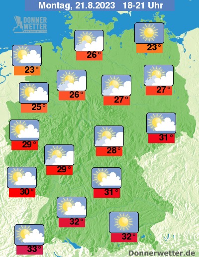 Die Temperaturen erreichen zunächst noch Werte um 23 bis 33 Grad.