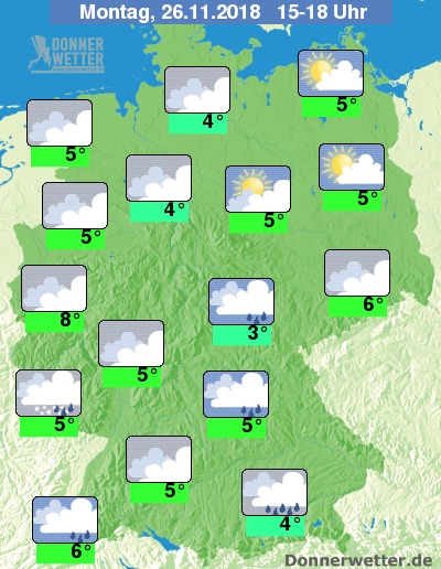 Am Montagmittag und -nachmittag zeigt sich der Himmel über weiten Landesteilen stark bewölkt oder bedeckt, nordöstlich der Elbe stehen die Chancen auf ein paar Sonnenstrahlen bundesweit am besten.