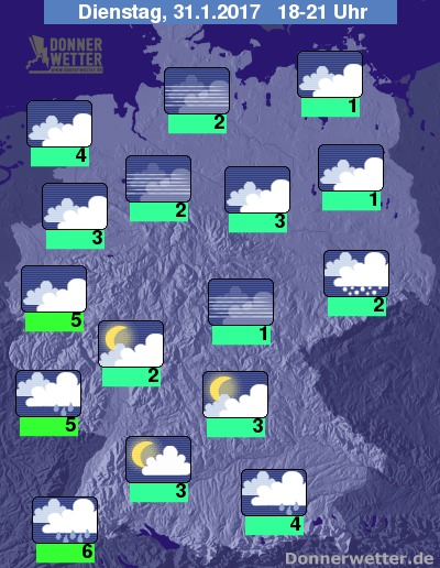 Heute Abend fällt am Alpenrand und am Erzgebirge noch zeitweise Regen, am Erzgebirge allerdings überwiegend Schnee. In den anderen Landesteilen ist es zwar meist stark, teils aufgelockert bewölkt, jedoch bleibt es weitgehend trocken. Die Abendwerte liegen bei 1 Grad im Vogtland und um 6 Grad im Breisgau.