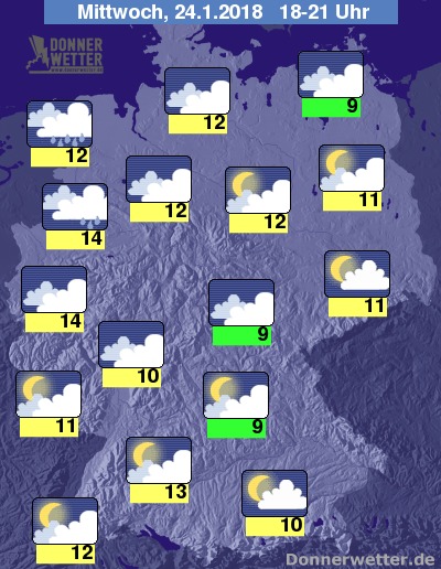 Heute Abend ziehen im Nordwesten kompakte Wolken mit zeitweiligem Regen auf, weiter nach Südosten ist es zumeist stark bewölkt oder trüb, hier und da kann es aber auch mal auflockern, dazu bleibt es trocken. Die Temperatur liegt bei sehr milden 9 bis 14 Grad.