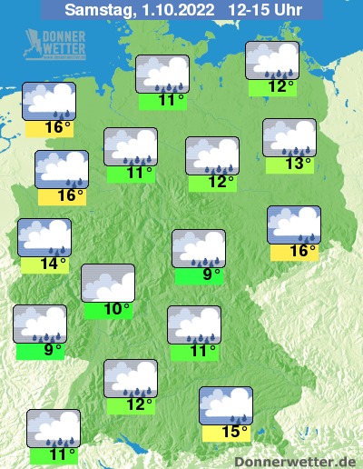 Heute Nachmittag ziehen verbreitet dichte Wolken durch und es fällt immer wieder, zum Teil kräftiger Regen. Die Temperatur liegt bei 9 Grad im Grabfeld und bis 16 Grad an der Ems. Der Wind weht zum Teil, an den Küsten verbreitet stürmisch.