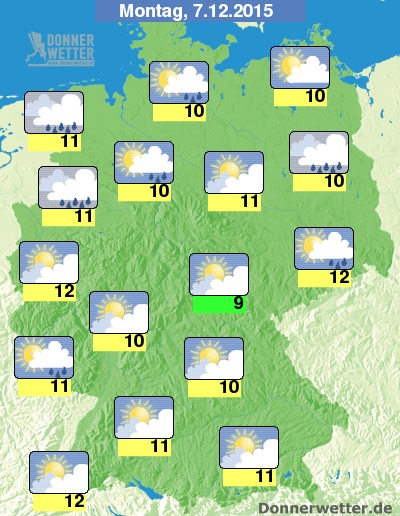 Heute zieht über den Norden Deutschlands meist starke Bewölkung hinweg und es fällt auch zeitweise Regen. Im übrigen Bundesgebiet zeigt sich neben lockerer bis aufgelockerter Bewölkung dagegen auch immer wieder mal die Sonne und es bleibt auch zum größten Teil trocken. Die Temperatur steigt auf 9 Grad im Vogtland und bis 12 Grad in Bonn.
