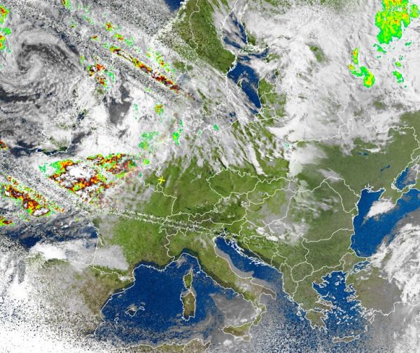 Auf dem Satellitenfoto von heute Morgen ist am linken oberen Bildrand ein Tiefdruckwirbel zu erkennen. Hierbei handelt es sich um das Tief "Ulrich" mit Schwerpunkt über dem Atlantik zwischen Island und den Britischen Inseln. Es sorgt für sehr wechselhaftes und mit zahlreichen Schauern durchsetztes Wetter über den Britischen Inseln, dem Norden Frankreichs, Benelux, der Nordhälfte von Deutschland und bis nach Skandinavien hinein.