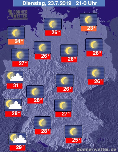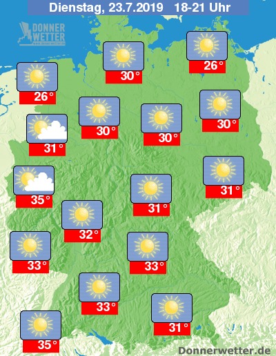 Verbreitet Abendwerte über 30 Grad, nur an den Küsten etwas kühler.