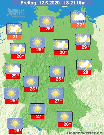 Am Abend kann es im Norden noch zu örtlichen Schauern und Gewittern kommen. Auch in den äußeren Westen können einzelne Regengüsse oder Gewitter hereinziehen. Sonst spendet die allmählich untergehende Sonne noch reichlich Helligkeit und Sommerwärme.