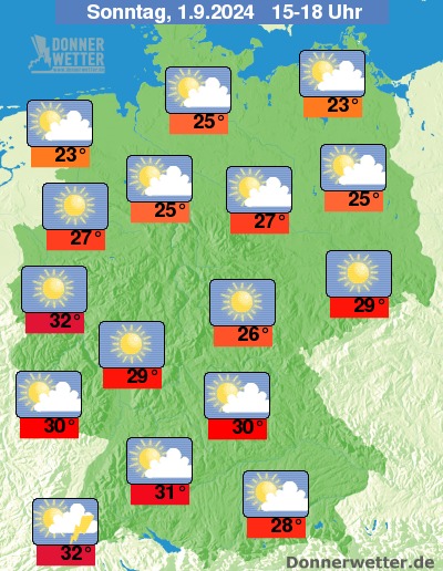 Im Süden und Westen bei bis zu 32 Grad heiß.
