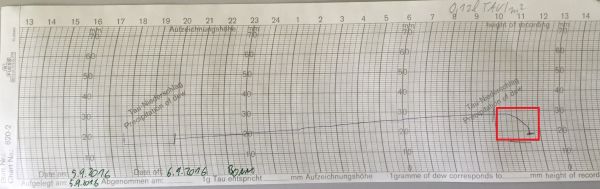Der Herbst ist die typische Zeit für Taubildung. Die Nächte werden nun immer länger und kühler und am Morgen dauert es länger bis die ersten Sonnenstrahlen auf den Boden treffen. An unseren Aufzeichnungen ist gut zu erkennen, wie sich im Lauf der Nacht pro Quadratmeter etwa 0,12 Liter Tau bilden. Mit Eintreffen der ersten Sonnenstrahlen gegen 10.30 Uhr beginnt jedoch die Verdunstung des Taus. Bereits nach weniger als einer Stunde ist dieser vollkommen verdunstet. Angesichts der trockenen und sonnigen Aussichten für die kommenden Tage, reicht bloß der Tau als Bewässerung für viele Pflanzen kaum aus.