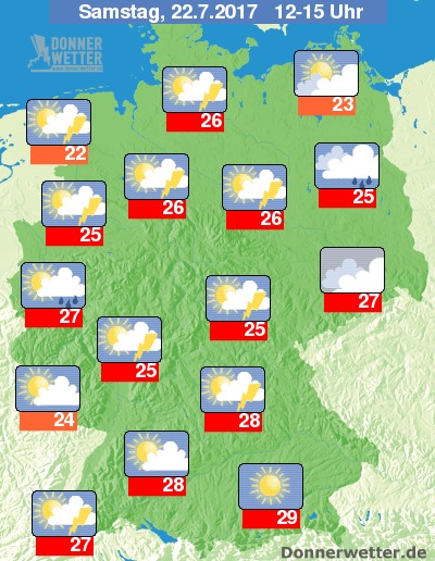 Heute Nachmittag ist es teils heiter, es können jedoch auch wiederholt kompakte Wolken durchziehen, dabei bilden sich gebietsweise Schauer und auch einzelne Gewitter. Die Temperatur liegt bei 22 Grad in Bremerhaven und um 29 Grad in München.