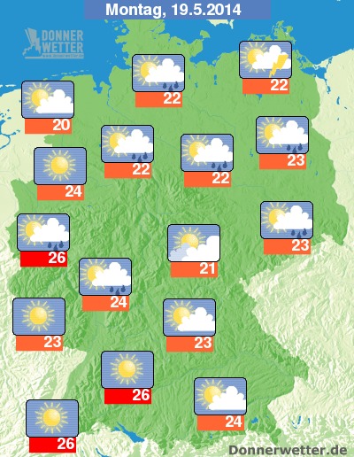 Mit Schauern, Gewittern und schwül-warmen Temperaturen geht es in die dritte Maiwoche!Ein Mix aus Sonne und Wolken bestimmt das Wetter am Montag, am freundlichsten wird es im Südwesten: Hier sind auch längere sonnige Abschnitte möglich.