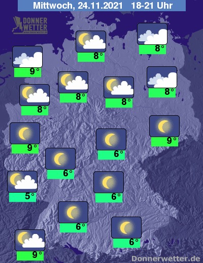 Heute Abend ist es im Norden weiterhin meist stark und hier und da etwas aufgelockert bewölkt. Im großes Rest der Republik zeigt sich der Himmel meist sternenklar oder es ziehen nur wenige Wolken durch. Es bleibt überall trocken bei 5 Grad in Saarbrücken und bis 9 Grad in Freiburg.