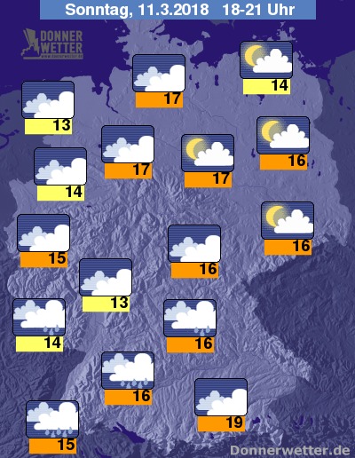 Heute Abend ziehen im Süden dichte Wolken mit zum Teil kräftigem Regen auf. Im übrigen Bundesgebiet ist es zwar meist stark bewölkt, aber trocken. Oft locker oder aufgelockert bewölkt zeigt sich der Osten und Nordosten der Republik. Die Werte liegen zwischen 13 und 19 Grad.