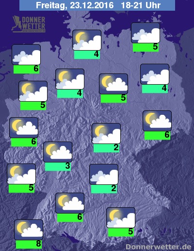 Dabei liegen die Höchstwerte zwischen 2 Grad im Thüringer Bergland und 8 Grad am Oberrhein.
