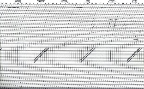 Unser Schrieb zeigt den Luftdruckverlauf an unserer Wetterstation in Bonn zwischen Dienstag und Sonntag vergangener Woche. Schön zu erkennen ist das Wochenendhoch.