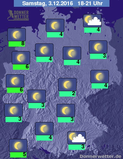 Heute Abend ziehen am Alpenrand sowie im Nordosten gebietsweise einige, jedoch lockere Wolkenfelder durch. Im großen Rest der Bundesrepublik ist der Himmel hingegen sternenklar, dabei bleibt es trocken. Die Temperatur liegt bei 2 bis 8 Grad.