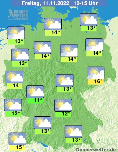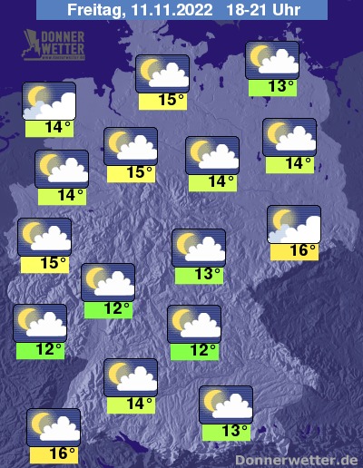Heute Abend ist es weiterhin oft nur locker bewölkt oder auch sternenklar, hier und da halten sich aber auch dichte Wolken oder es ist trüb, jedoch bleibt es trocken. Die Temperatur liegt bei 12 Grad in Saarbrücken und 16 Grad in Dresden.