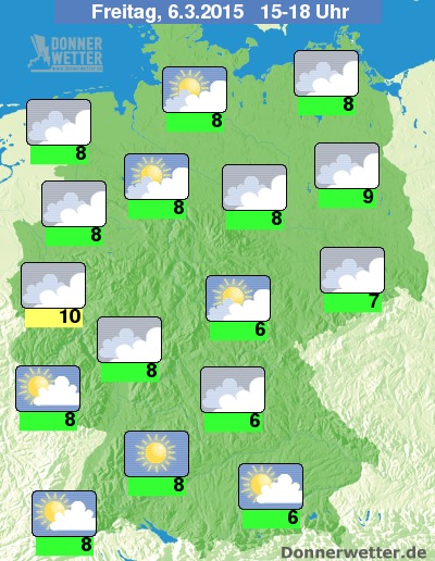 Der Nachmittag und frühe Abend des heutigen Freitags zeigt sich vor allem in der Südhälfte Deutschlands häufig freundlich. Die anfänglich noch dichte Wolkendecke in der Nordhälfte kann im Tagesverlauf aber auch immer wieder mal auflockern. Bedeckt zeigt sich dagegen die Osthälfte des Landes.