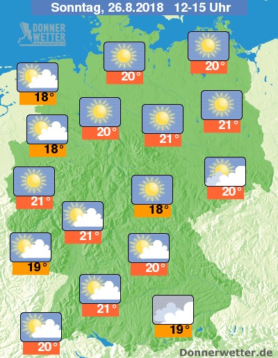 Heute Nachmittag scheint im Land verbreitet die Sonne und es ziehen meist nur wenige oder lockere Wolken durch, oft ist es auch wolkenlos. Dichte Wolken halten sich im Südosten Deutschlands, dabei ist vereinzelt noch ein Schauer möglich, sonst bleibt es aber trocken. Die Temperatur liegt bei 18 Grad an der Ems und bis 21 Grad am Rhein.