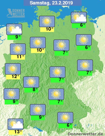 Heute zeigt sich das Land von seiner sehr freundlichen Seite. Die Temperaturen kommen mit 6 Grad an der Oder und bis 13 Grad am Oberrhein zwar noch nicht auf richtige Frühlingswerte, aber die Sonne verwöhnt uns meist von morgens bis abends. Zudem bleibt es im gesamten Bundesgebiet trocken.