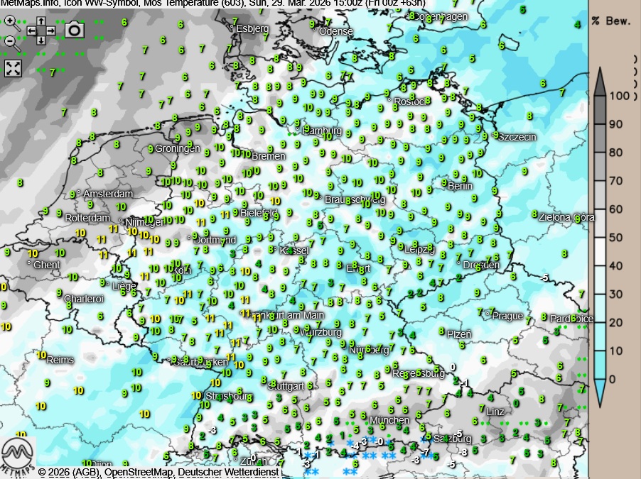 Verbreitet wieder Werte über 10 Grad, dabei häufig freundlich.