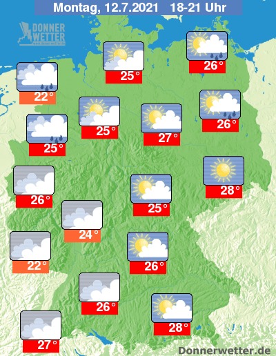 Heute Abend zieht es sich vor allem über der Südwesthälfte Deutschlands immer weiter zu und in den westlichen und südwestlichen Landesteilen sind erste Schauer und vereinzelt auch Gewitter möglich. Im Norden und Nordosten sind bei teils starker, teils aufgelockerter Bewölkung gebietsweise Schauer und lokale Gewitter möglich. Im übrigen Land ist es meist heiter, teils sonnig und dazu trocken. Die Temperatur liegt bei 22 Grad im Saargau und bis 28 Grad in der Lausitz.