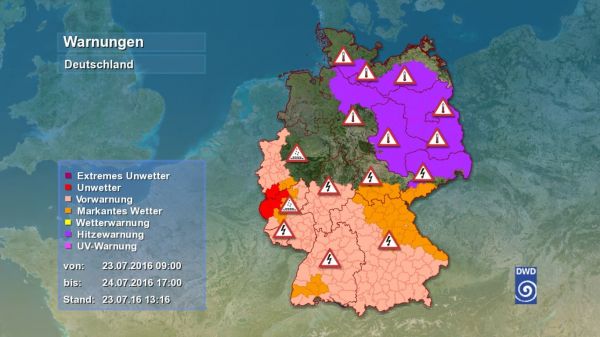 Unwetterwarnkarte 23.07.2016 13:16 Uhr