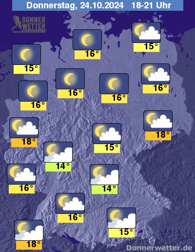 Heute Abend können vor allem im Süden und Südwesten gebietsweise einige, teils auch dichte Wolken durchziehen. Ansonsten bleibt es aber meist nur leicht bewölkt oder sogar sternenklar und dabei trocken. Die Temperatur liegt bei 14 Grad in Nürnberg und rund 18 Grad in Köln.
