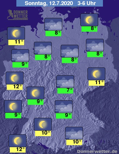 In der Nacht auf Sonntag zeigt sich der Himmel zunächst häufig sternenklar oder es ist nur locker bewölkt, in den frühen Morgenstunden kann sich dann vor allem im norddeutschen Tiefland sowie in den südöstlichen Mittelgebirgen verbreitet Nebel bilden. Es bleibt trocken.