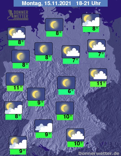 In der Nacht zum Dienstag ziehen über dem Süden des Landes noch meist viele und teils dichte Wolken durch. Im übrigen Bundesgebiet zeigt sich der Himmel verbreitet nur gering bewölkt oder sternenklar, dazu bleibt es trocken. Es bildet sich stellenweise Nebel, dabei besteht die Gefahr von Reifglätte! Die Temperatur sinkt auf 4 Grad im Breisgau und bis -2 Grad im Grabfeld.