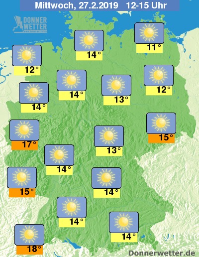 Die Temperaturen erreichen Werte zwischen 11 Grad an der Ostseeküste und 18 Grad im Breisgau.