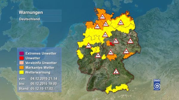 Am Sonntag wechseln sich am Vormittag Sonne und Wolken einander ab und es bleibt überall trocken. Vor allem nach Süden hin zeigt sich der Himmel auch oft heiter bis sonnig. Am Nachmittag ziehen von Nordwesten her jedoch dichte Wolken mit Regen auf, die bis zum Abend auch den Norden und Westen Deutschlands bedecken. Über der Südosthälfte der Republik bleibt es hingegen meist locker oder aufgelockert bewölkt und dazu trocken. Die Temperatur steigt auf 8 Grad im Eichsfeld und bis 12 Grad in München. Im Norden weht verbreitet starker bis stürmischer Wind, in Küstennähe herrscht oft Sturm mit schweren Sturmböen.