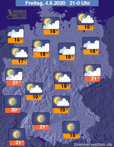 Die Temperaturen liegen am frühen Abend noch zwischen verhaltenen 19 Grad an der Ems und sommerlichen 28 Grad im Südwesten.