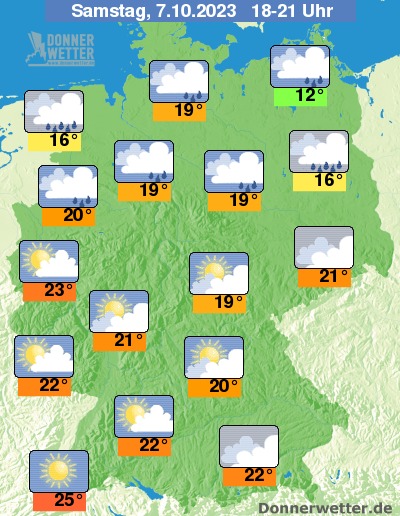 Heute Abend fällt vor allem über dem Norden aus kompakten Wolken gebietsweise Regen. Im Osten ist es meist stark bewölkt und ebenfalls streckenweise nass. Im übrigen Bundesgebiet ist es teils heiter, teils ziehen auch einige Wolken durch, dazu bleibt es aber trocken. Die Temperatur liegt bei nasskalten 12 Grad in Rostock und bei sommerlich warmen 25 Grad in Freiburg.