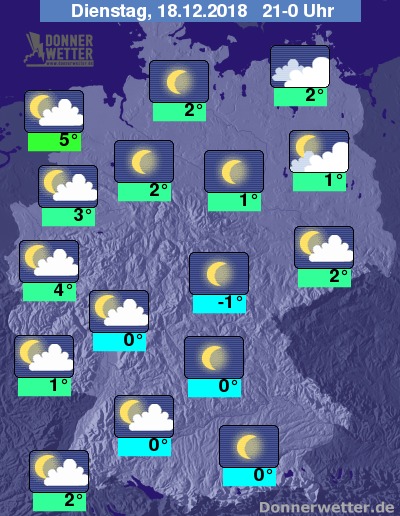 Bis Mitternacht sinken die Temperaturen in der Mitte und im Süden örtlich in den leichten Frostbereich.